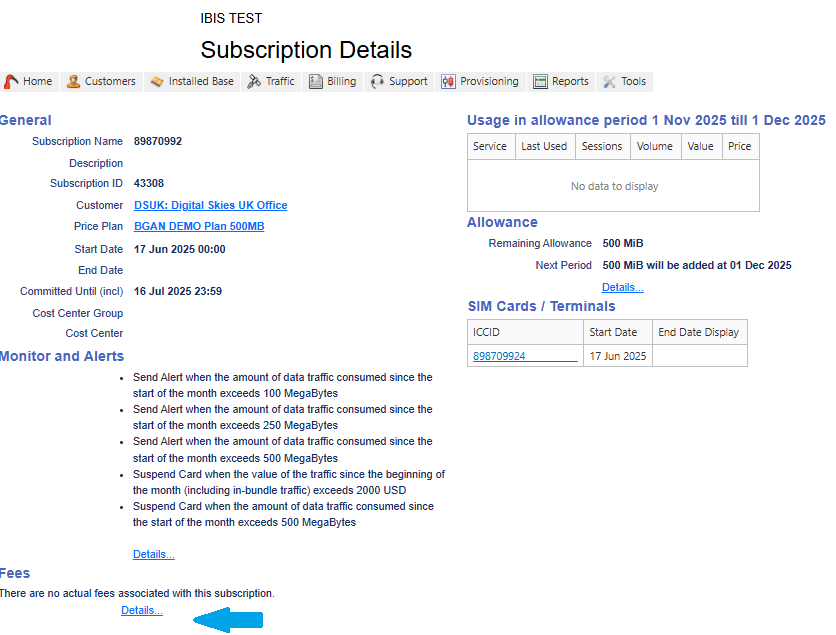 - Select the subscription page and scroll down to Fees and select the hyperlink Details