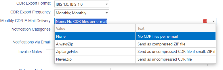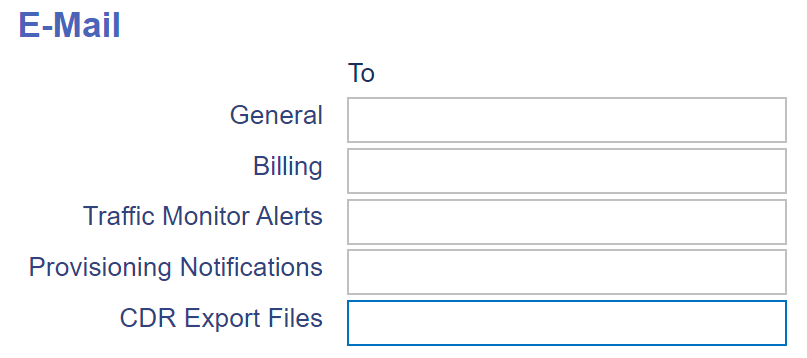 2. Add email address in Customer account Email settings field CDR Export Files. CDRs will be sent in a zipped file to this specified email address.