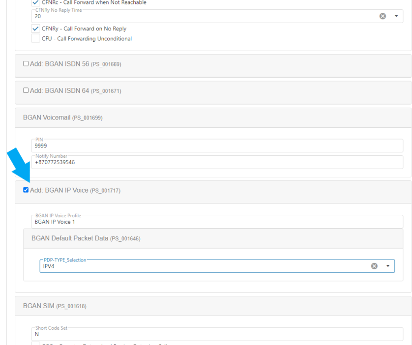 Below example is a BGAN Service configuration change where BGAN IP voice has been added to an active BGAN device.