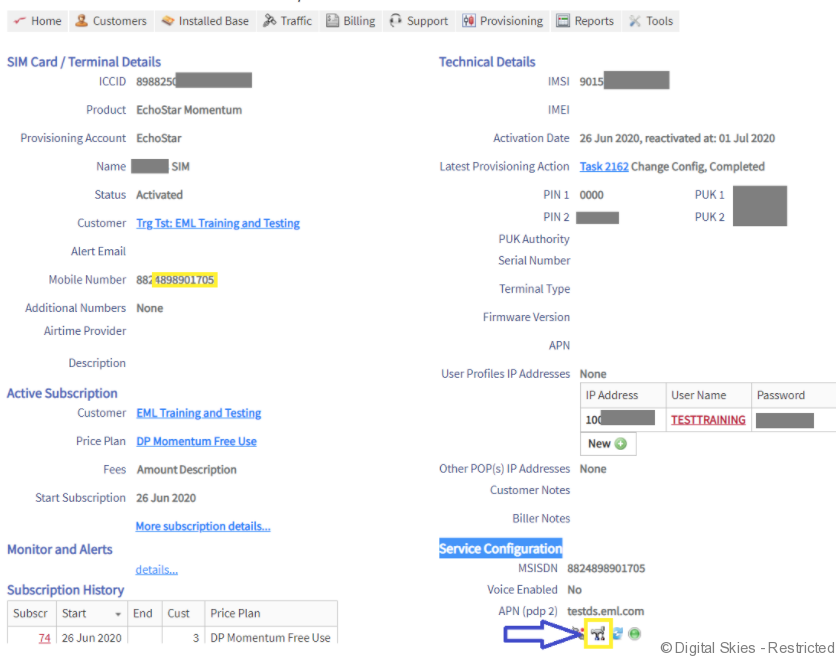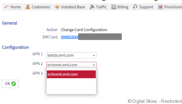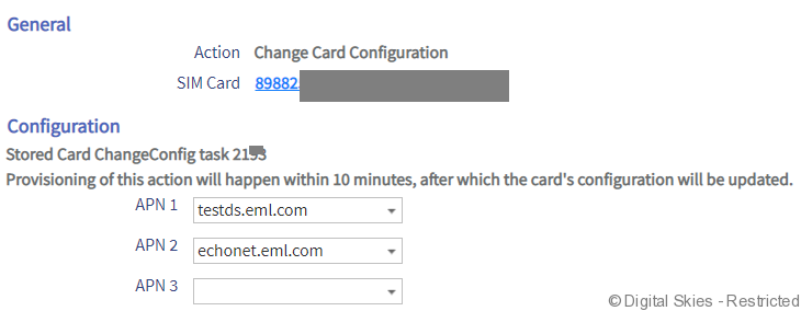 Once the Task has completed the APN will be added under the ‘Service Configuration’ of the SIM card.