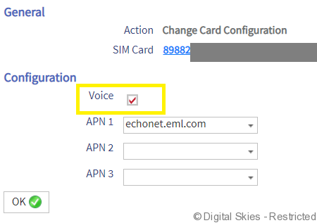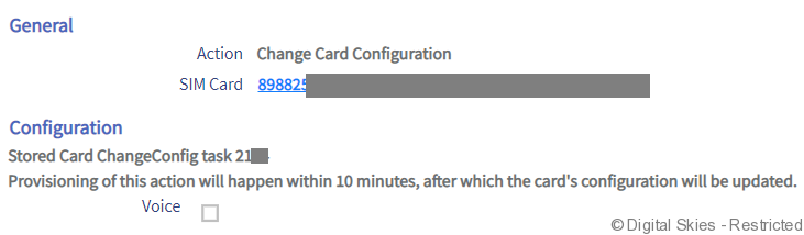 Once the Task has completed, the voice service can be checked under ‘Service Configuration’ of the SIM card.