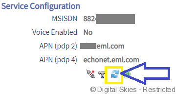 From the SIM card details page, click on the ‘Refresh’ icon under the heading ‘Service Configuration’