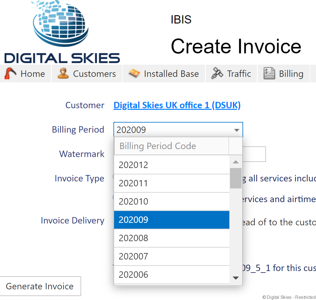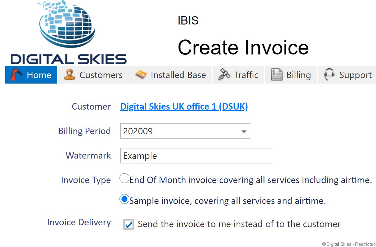 Periodically there may be a requirement to create a manual customer invoice before the next EOM has been run or, to create a sample invoice to either check the layout or to provide an example to a customer.