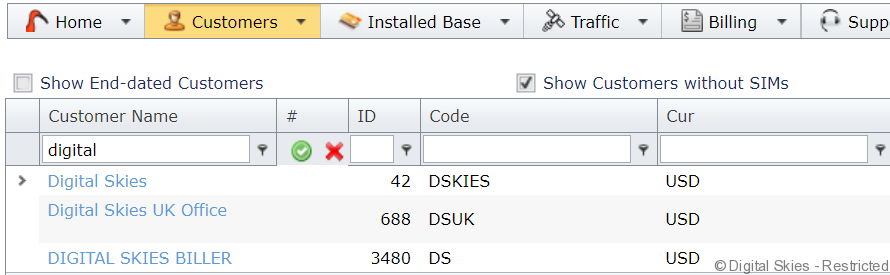 Managing customers in IBIS is done from the [Customers] screen. The principles for customer creation and management apply to customers for all airtime types. In case there are any specific customer details that differ per airtime type, this will be covered under that airtime segment.