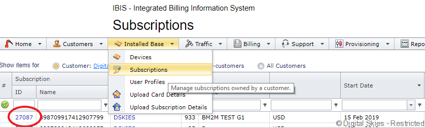 - the provisioning to the satellite operator is correct but the incorrect customer price plan has been selected. The created subscription needs to be deleted and a new subscription (billing only) created.