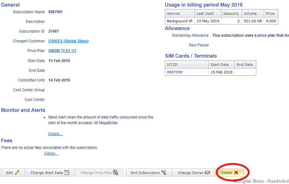 NOTE: it is advised to delete a subscription only when a subscription has not yet been invoiced.