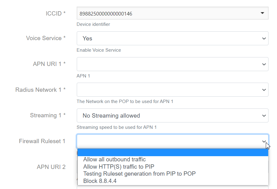 Place this code directly under the APN details. For additional firewall ruleset selection boxes, repeat but with the following parameter codes: