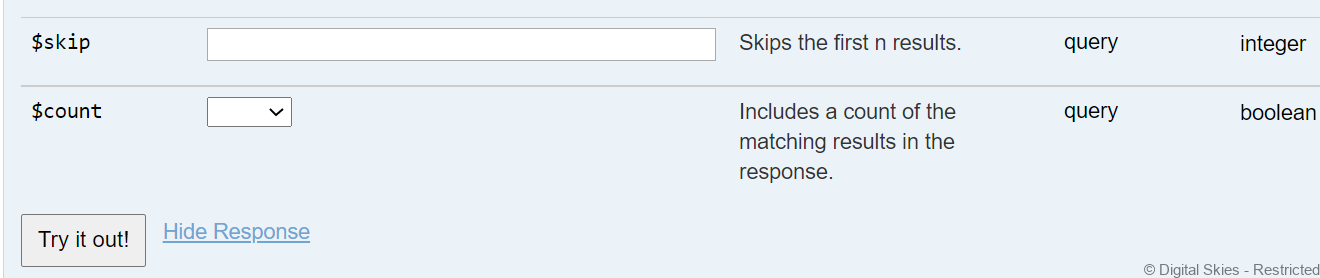 They can now use the usual ODATA filters (or leave everything blank), and click the “Try it out” button.