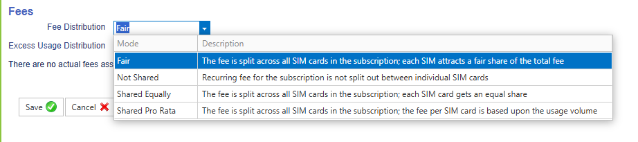 The fair distribution mode is intended to distribute the subscription fee and allowance of a pooled subscription (static subscription) in a fair way across the SIM cards that participate in the subscription. Each SIM card user that uses a pooled subscription with a total of N cards gets the guarantee that the card will never get charged more than 1/Nth of the subscription fee as long as he does not use more than 1/Nth of the allowance. If he uses less and others use more, he will be charged less.