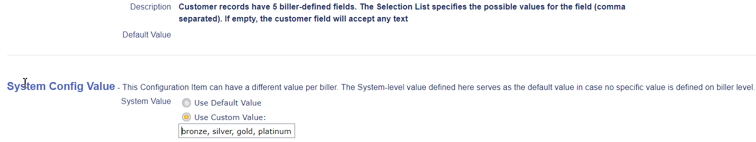 Select [Customer Field Label 1] to create the first customer field label. On the bottom of the screen select [edit]. This will bring up the option to configure this field. The default value is to not use this field. Change this to [Use Custom Value:] and then enter the name of the field to be added (in this case: customer tier).