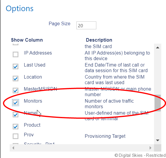 In the SIM Cards / Terminals overview it is possible to add a column with the number of traffic monitors on a device. This can assist with checking if every device that has been activated has a traffic monitor set up.