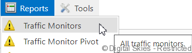 This report, and the traffic monitors pivot, is available under the [Reports] menu header.
