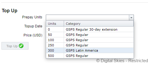 A GSPS sim card can be topped up with vouchers of three types: regular prepay, Latin America prepay and Sub-Saharan Africa prepay.