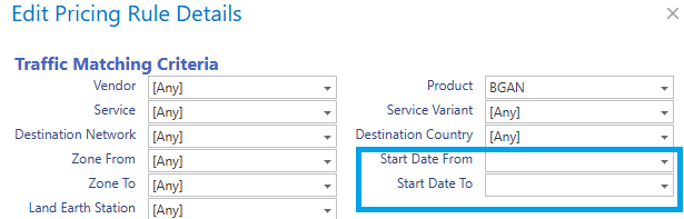 Start date From/To: Here you can define that a pricing rule is applicable as of and till a specific date. The Start Date from/to criteria can be used to implement a price change that will happen in the future.