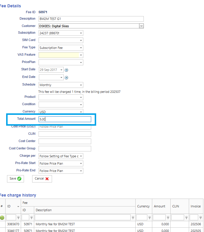 Subscription fee / Vas fee change