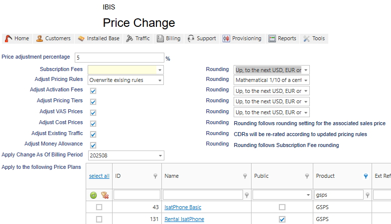 There are several features in IBIS that can be used to process a price change. Depending on the scope and the intended result of the price change a biller can select one of the below methods.