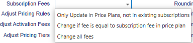 When the prices of the subscription fees of the existing subscriptions on a Price plan need to be adjusted, the following tick boxes need to be selected (and saved) BEFORE the subscription fee amount is changed.