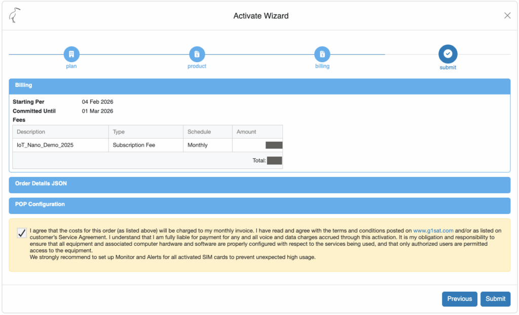 Agree to the costs and [Submit] the activation.