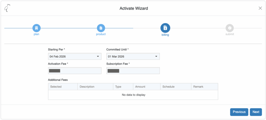 Go to the terminal details screen and at the bottom of the page, select [Activate]. This will bring up the activation wizard. Mandatory fields that need to be populated during the activation process are: