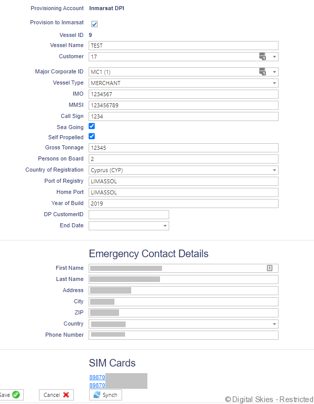 - For information on how to change a vessel on an active SIM see [Changing Vessel for active SIM]