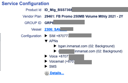 Or look at the service configuration in the SIM card details screen where you can see the Vessel the SIM is registered against.
