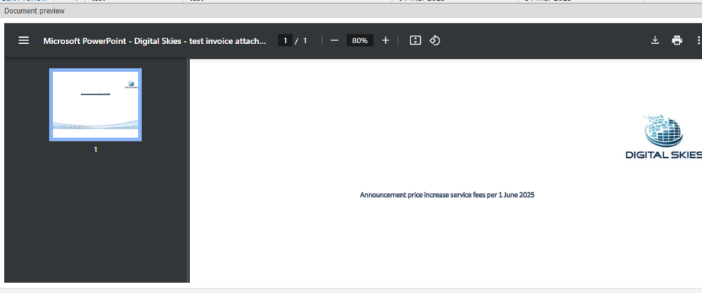 In the Attachment overview, details can be edit and the attachment it self can be previewed: