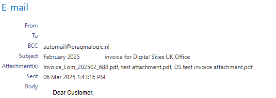 To enable a Biller to sending other information with the invoice email, like announcement of service changes, a price increase or other sales or billing related information, the below setting is introduced.