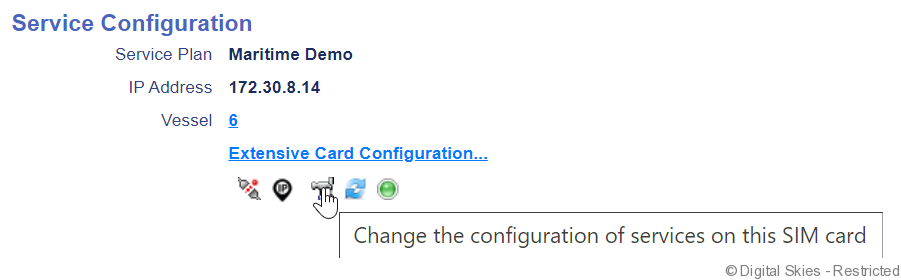 Go to the SIM card details screen of the SIM card that the SDF needs to be enabled on. On the bottom right of the page select [Extensive Card Configuration], which will open the configuration wizard screen.