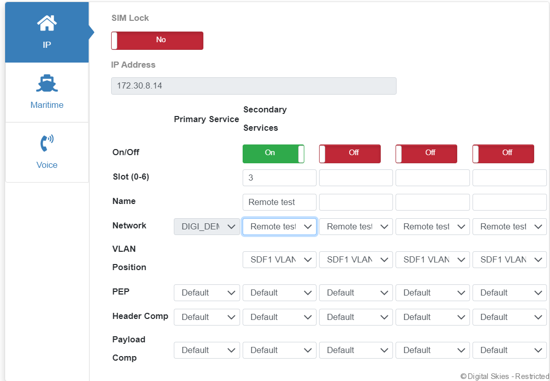 - The network selected is the name of the SDF that is to be used. Note that the SDF has to be made available to the customer owning the SIM card for it to show in this list.