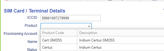 NOTE: for Certus GMDDSS provisioning it is not required to specify the ICCID product as Cert GMDSS, the provisioning wizard will identify the ICCID and the available Safety configurations automatically. The product is introduced purely for billing and reporting efficiency.