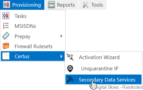 In IBIS, go to [Provisioning] and select [Certus]