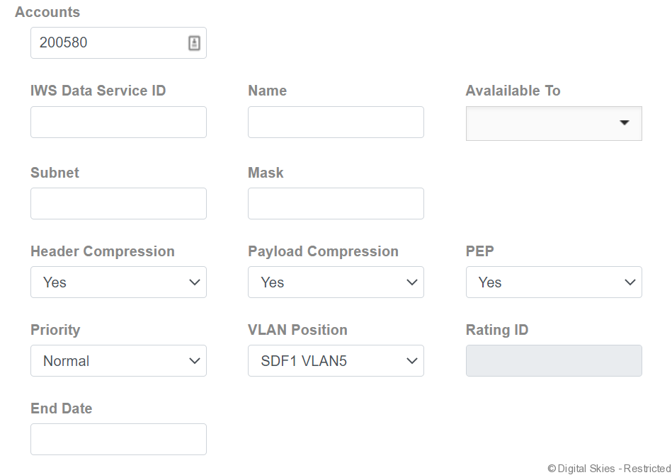 - Leave the IWS Data Service ID empty. This will be populated by Iridium