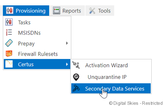 Secondary Data Flow settings are available in the Provisioning menu in IBIS: