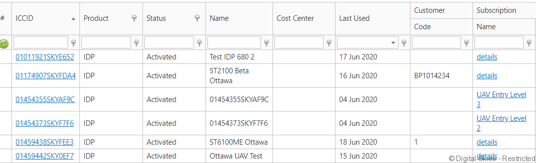 - View IDP terminal details – click on the terminal ID in the [ICCID] column