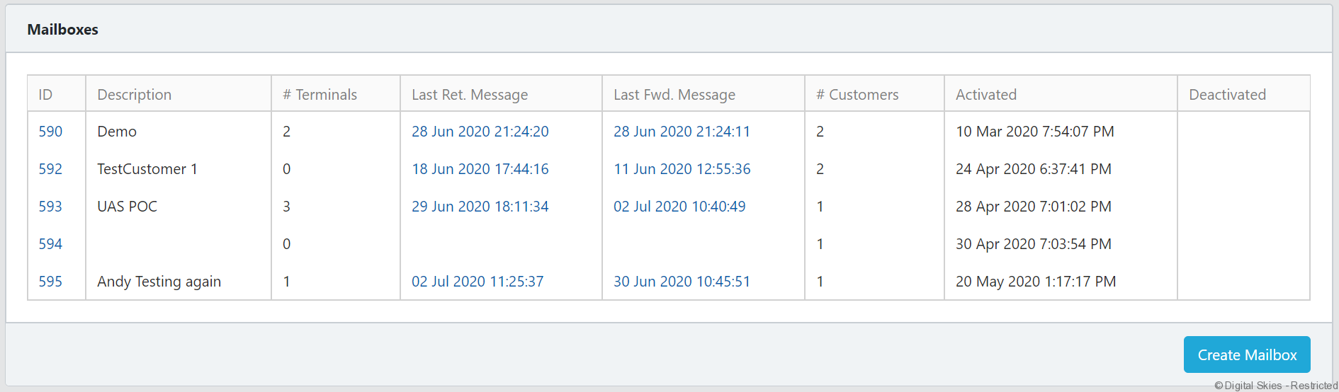 The mailbox overview screen shows all the mailboxes that can be managed by the current user.