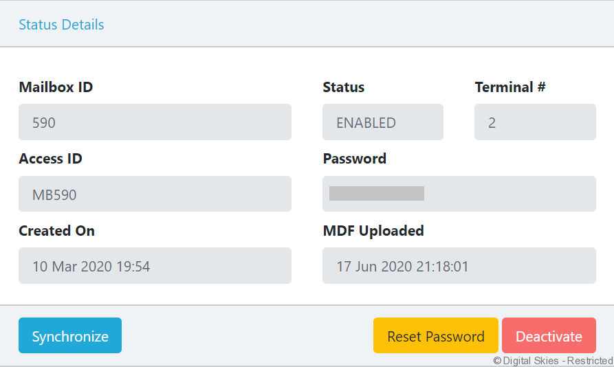 Important – Always reset the Mailbox password in ISIP. Passwords reset directly in the Inmarsat IDP Portal will not synchronize with ISIP and the Mailbox will be inaccessible from IDP management.