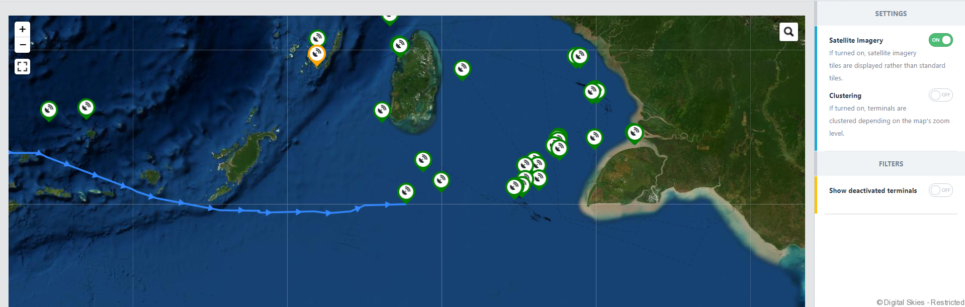 To view a terminal’s path and other terminal details, click the marker on the map.
