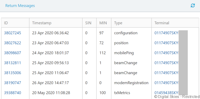 Return Messages displays messages sent BY a terminal or terminals in the selected mailbox.