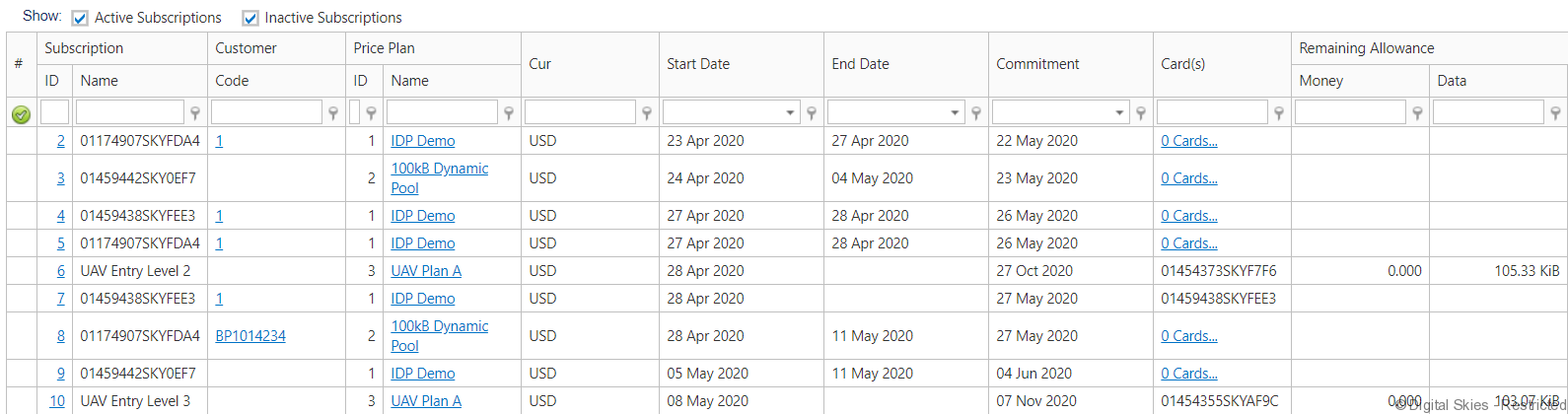 ID – This is the unique ID identifying the subscription. Clicking on this leads to the subscription details page