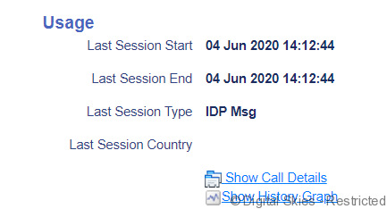 Data is displayed about the last call event, service and country location.