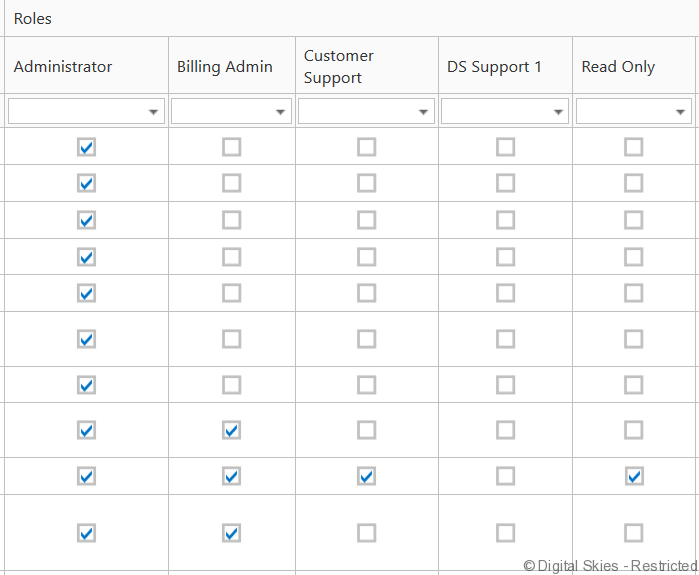 Access to ISIP functionality is based on User Roles. Please note that any user in the hierarchy only has access to their own customer level and the levels below, not to the levels above. An Inmarsat Solutions user has access to the data of all Inmarsat Solution SPs. An Inmarsat Solutions SP only has access to their own SP level, and any customers they may create underneath.