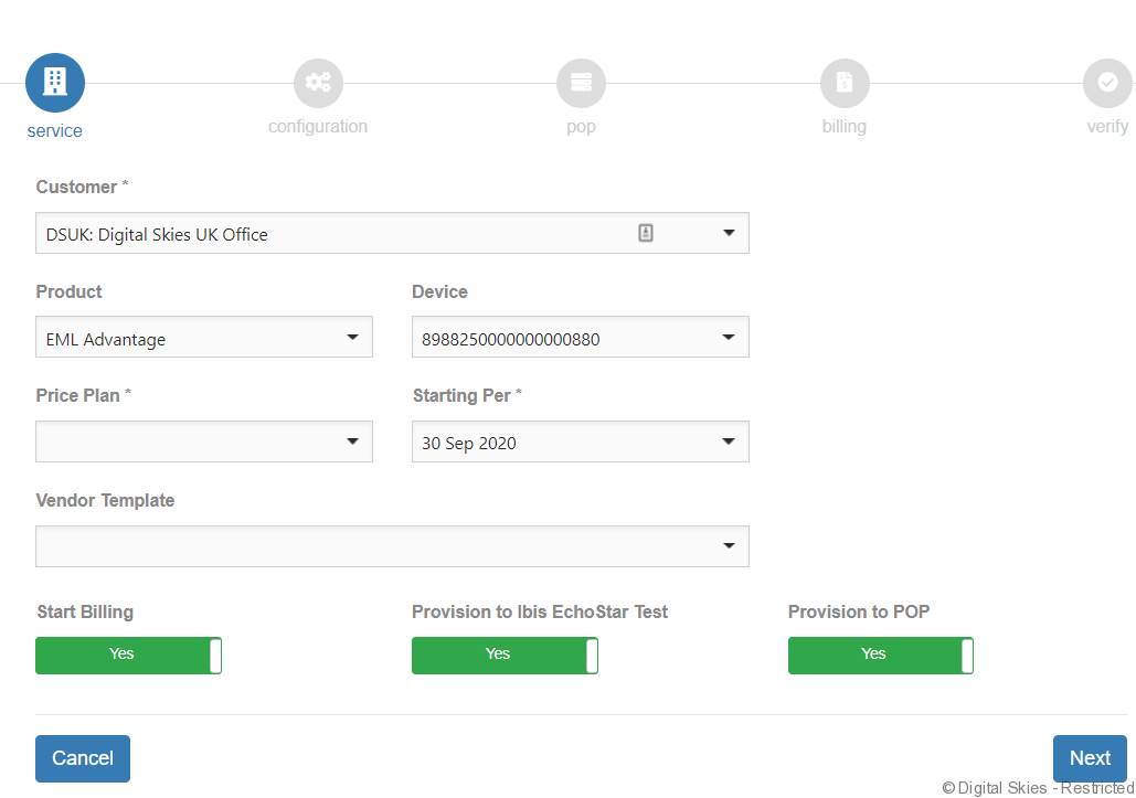 - The priceplan to activate the device on has been created and is made available to this customer. If not, go to price plan creation
