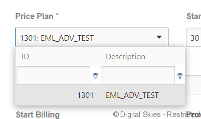 Select the price plan requested from the drop down menu.