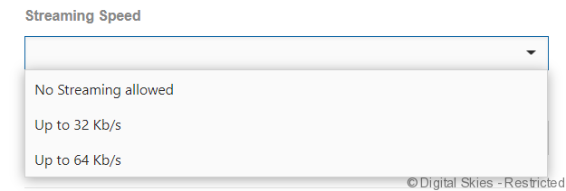 Streaming Speed (only available for EM Advanced plans, for EM Momentum this will default as ‘No Streaming Allowed’). Select the streaming speed required.