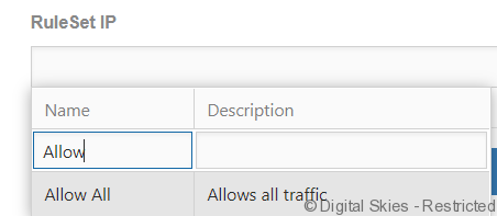 Rule Set IP – Allocated the required Firewall Rule from the drop down list. If the ruleset required is not available please check the settings and see if it is available for this customer.