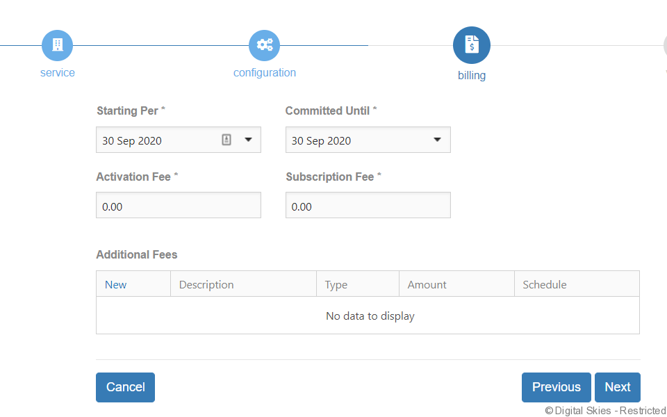 The next page is for the user to confirm the start & commitment date is correct as add any other fees that may be applicable.