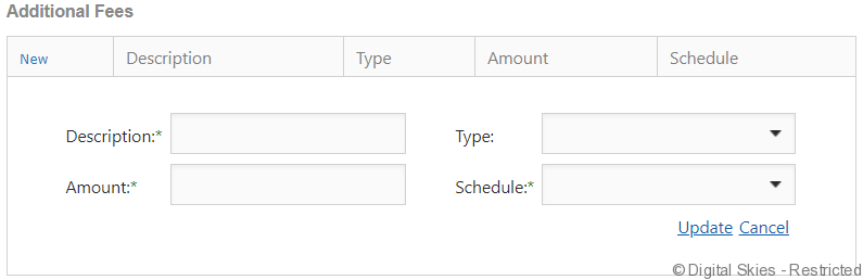 If an additional fee is required, click on the [New] link and complete the required details and click [update]