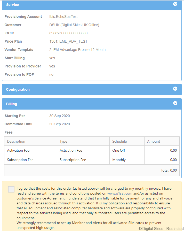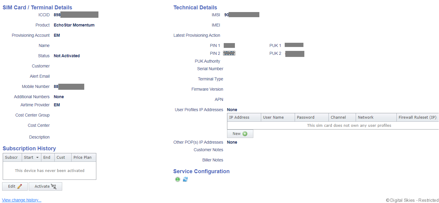 This will open Open SIM card/Terminal Details screen, click [Activate] on the bottom of the page