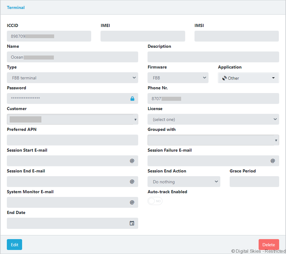 Send SMS – Send a custom SMS to the terminals listed mobile number.