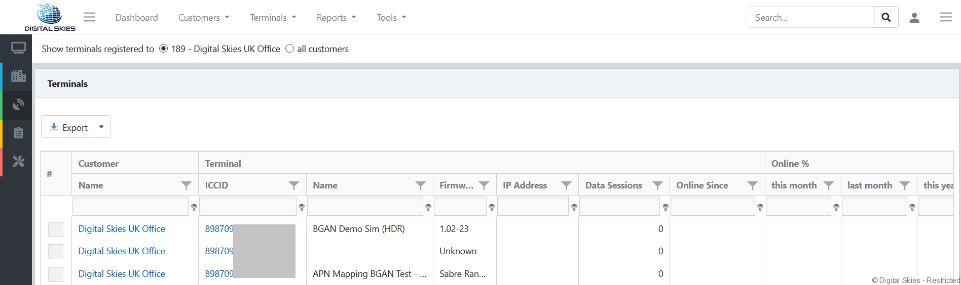 Session and network data are only available if the traffic was routed through Digital Skies PoP.